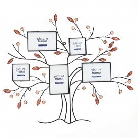 Iron Photo Frame Tree Metal Family Memory Photo Wall Background Decoration Green/Red Leaves Tree Picture with 5 Photo Frames